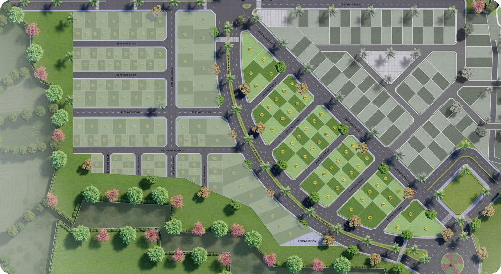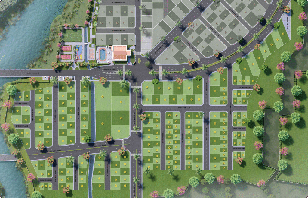 Thoughtfully designed for seamless living with wide roads and lush green spaces!